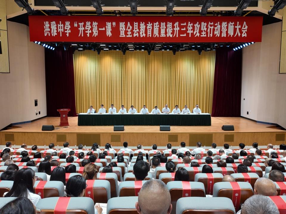 洪雅中学“开学第一课”暨全县教育质量提升三年攻坚行动誓师大会举行