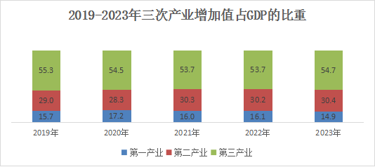 根据眉山市地区生产总值统一核算结果:2023年,全县地区生产总值(GDP)160.33亿元,按可比价计算,比上年增长7.6%。其中,第一产业增加值完成23.95亿元,增长4.4%;第二产业增加值完成48.66亿元,增长9.7%;第三产业增加值完成87.72亿元,增长7.5%。三次产业对GDP增长的贡献率分别为9.9%、37.8%、52.3%,分别拉动GDP增长0.7、2.9、4.0个百分点。三次产业结构由上年的16.1:30.2:53.7调整为14.9:30.4:54.7。按常住人口计算,人均地区生产总值54277元,增长7.8%。