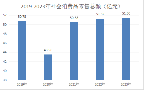 全年社会消费品零售总额51.50亿元,增长0.4%。