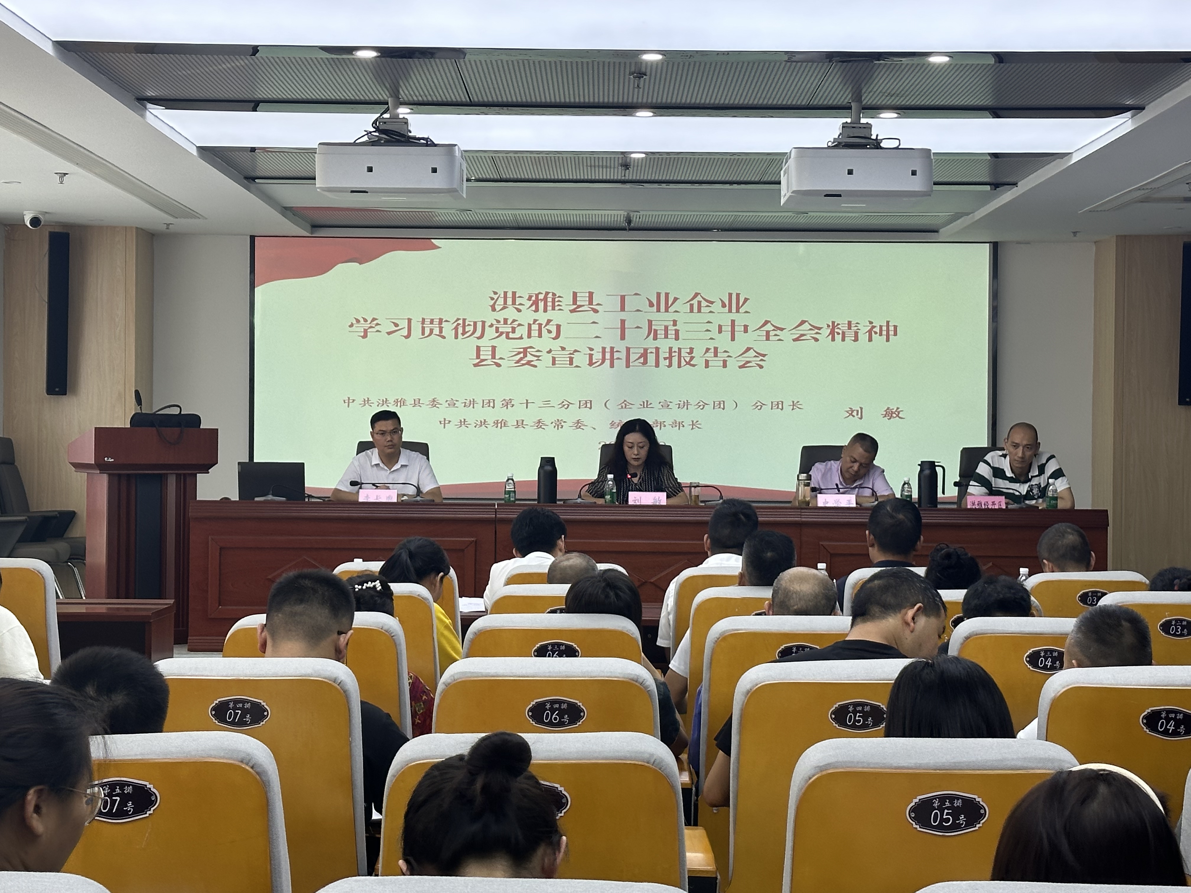 宣讲中,县委宣讲团第十三分团分团长、县委常委、统战部部长刘敏从“深刻把握党的二十届三中全会的重大意义,深刻把握进一步全面深化改革的重大举措,深入学习贯彻党的二十届三中全会精神、确保党中央决策部署在洪雅在工业战线落地见效”三个方面作了深入阐释和全面解读。