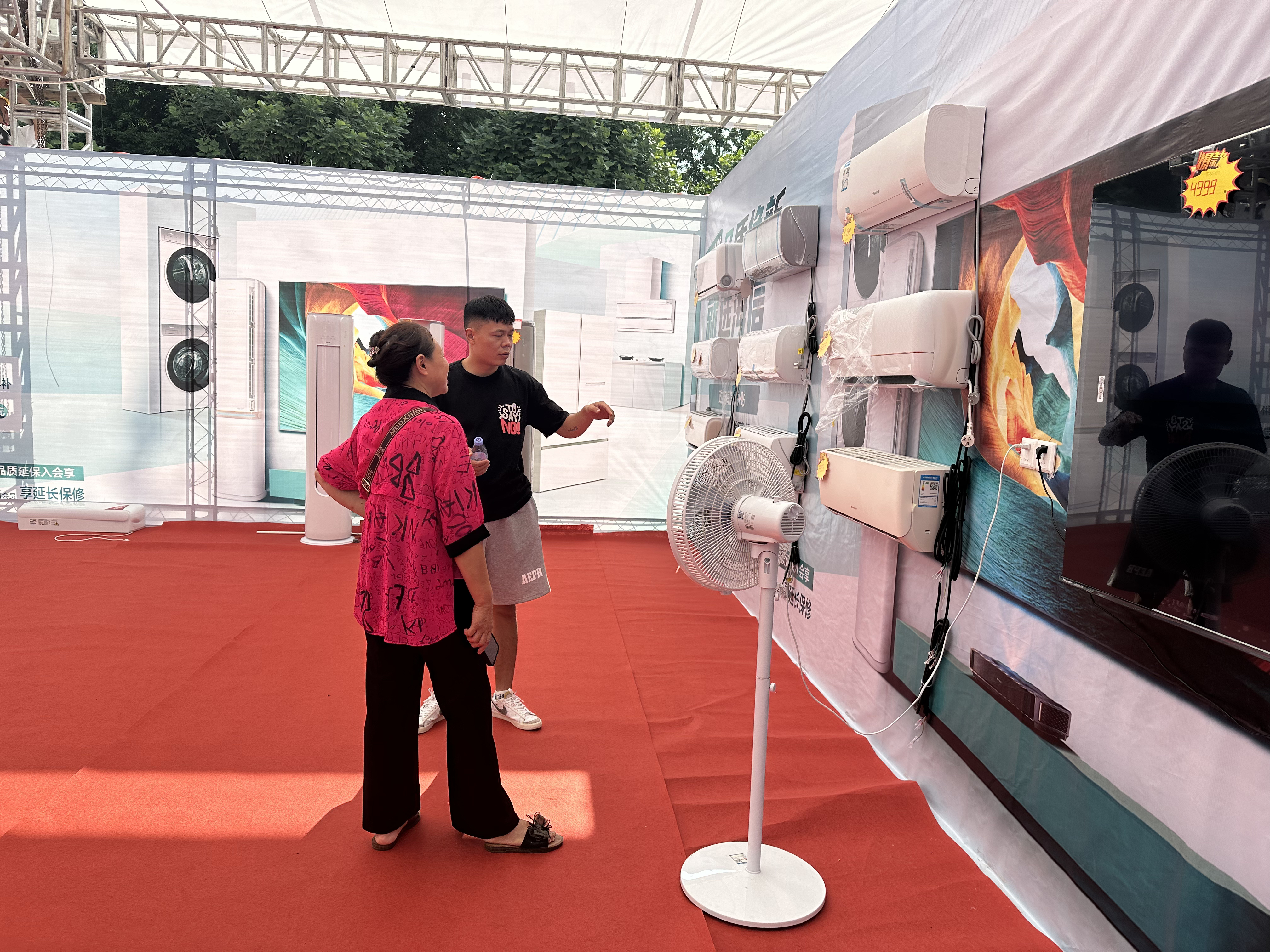 活动现场,洗衣机、空调、家用灶具、笔记本电脑等家电整齐排列,美的、格力、海尔……各个品牌的家电一应俱全,前来挑选的市民络绎不绝,销售专员耐心讲解家电“以旧换新”补贴政策,并根据客户需求推荐适合的家电产品。