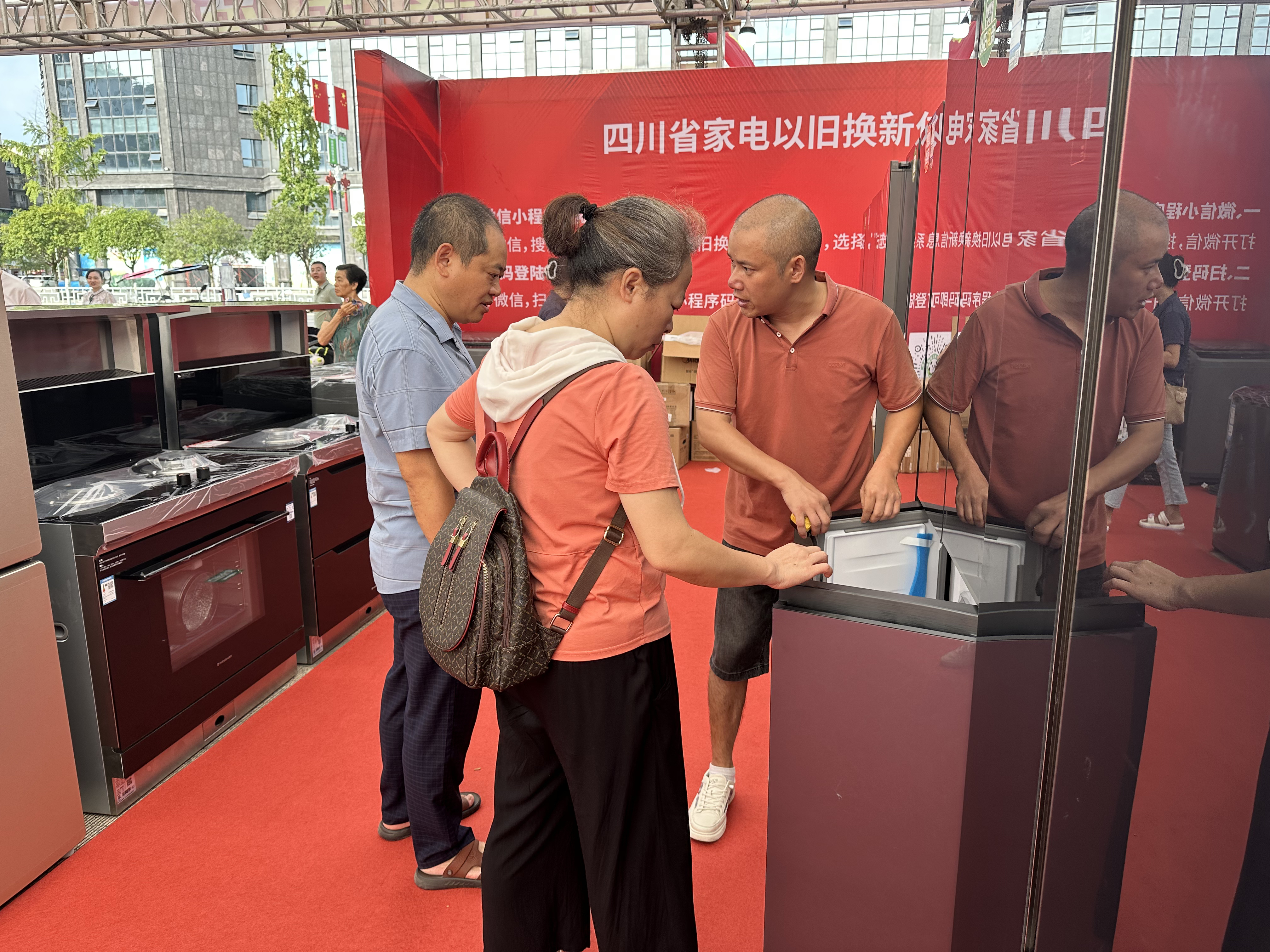 顾客周敏说:“马上要结婚了,看这儿很多人,过来了解了一下,说是有以旧换新的补贴政策,打算买冰箱、洗衣机、电脑等家电,感觉很优惠,比平常省了很多钱。”
