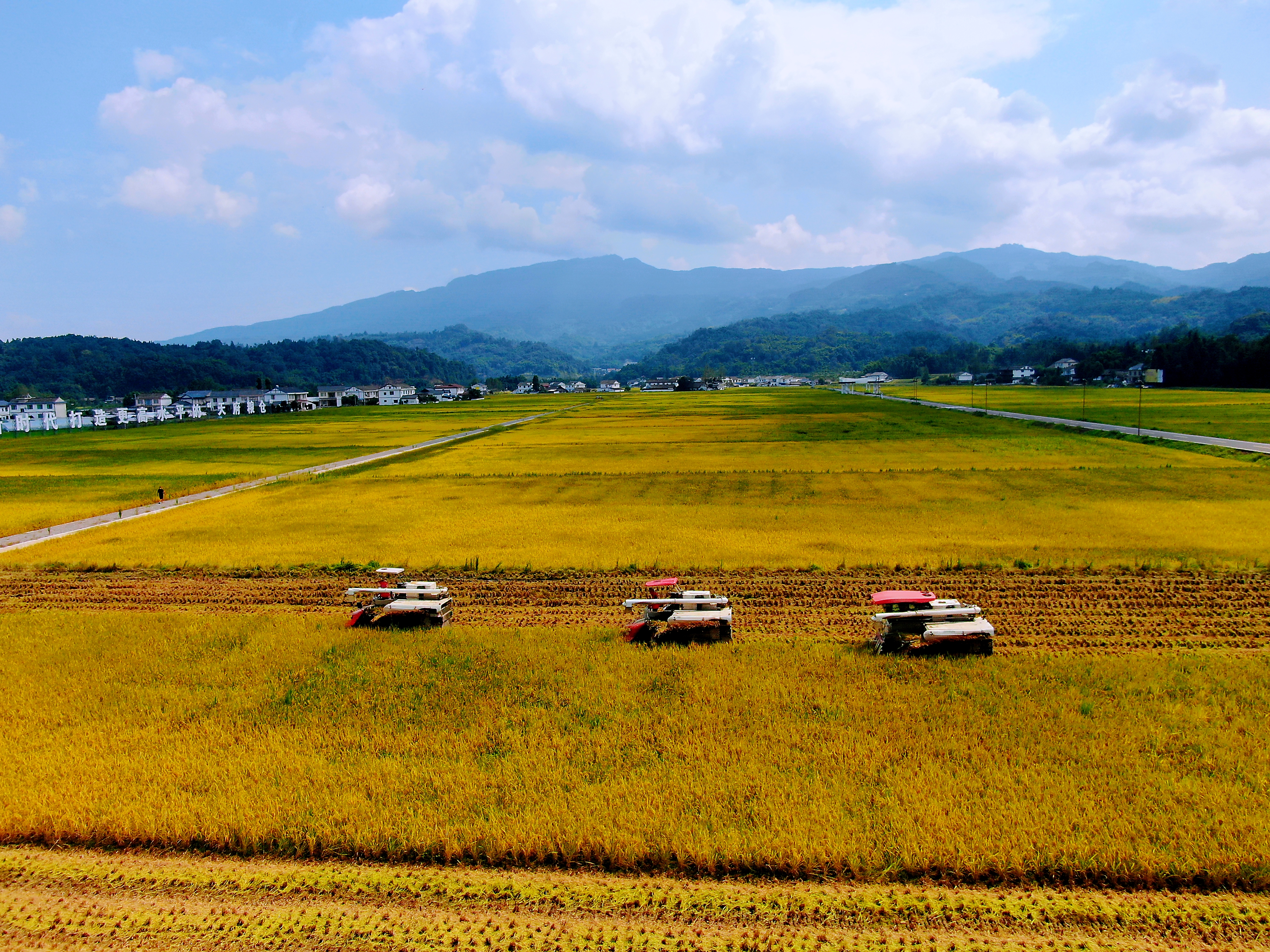 金秋时节,稻香弥漫。在柳江镇两河村的高标准农田里,一眼望去满是金黄的水稻,稻穗随风而动,谷粒饱满圆润。收割机在田间来回穿梭忙碌,稻穗被卷入机器中,快速实现稻谷与稻秆的分离。据了解,今年以来,两河村大力开展高品质“东坡大米”“洪雅大米”试点攻关,着力扶持发展粮油类绿色食品、有机农产品,打造一批绿色、有机稻生产基地,推动绿色优质农产品向旅游商品转变。