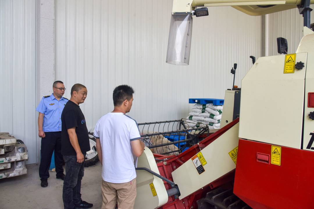 近期,我县水稻实现大丰收,农机的使用为农民提供了便利。在安全生产月期间,县农业农村局组织执法人员对部分农机合作社、农事服务中心等农机大户开展农机安全生产检查,从源头上消除农机安全隐患,有效遏制农机安全生产事故发生,保障农机作业安全稳定运行,为我县农业安全生产保驾护航。