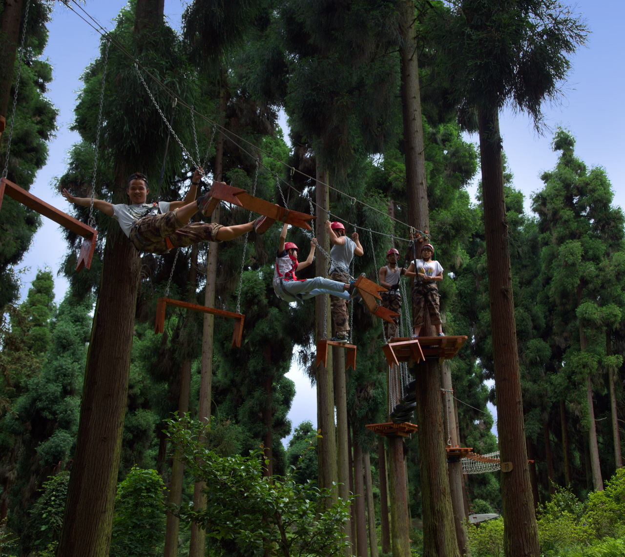△ 游客在森林里体验树冠漫步、丛林穿越等项目,纷纷为其点赞。