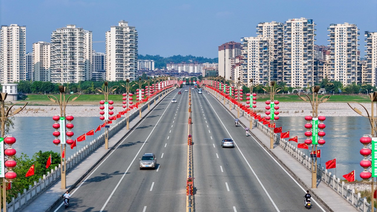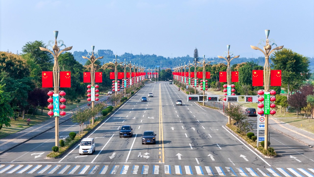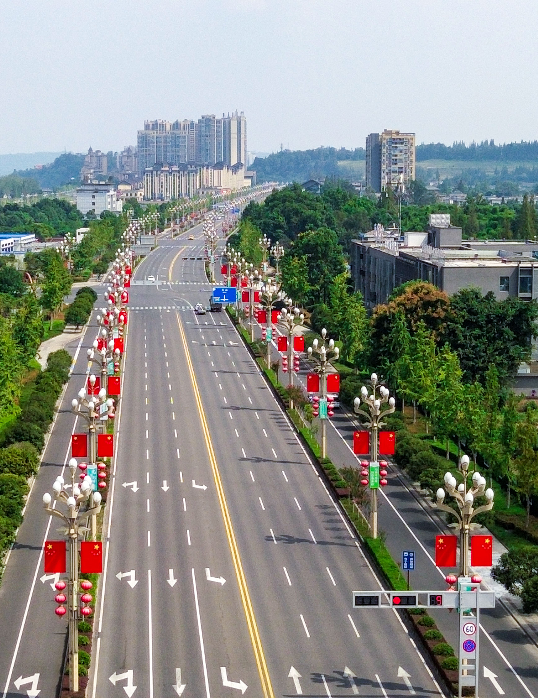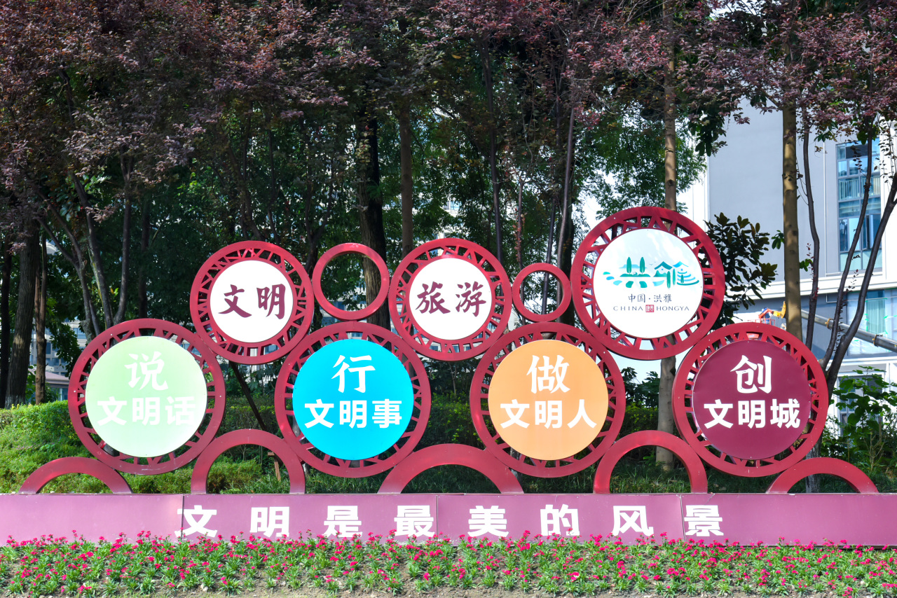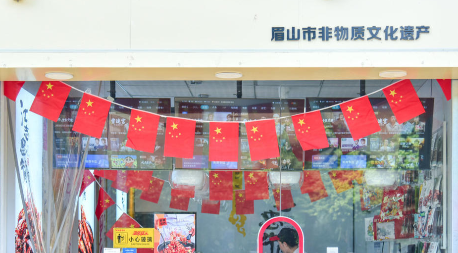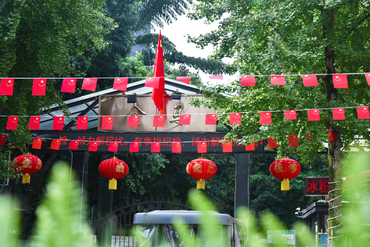 洪雅以满城的五星红旗为笔