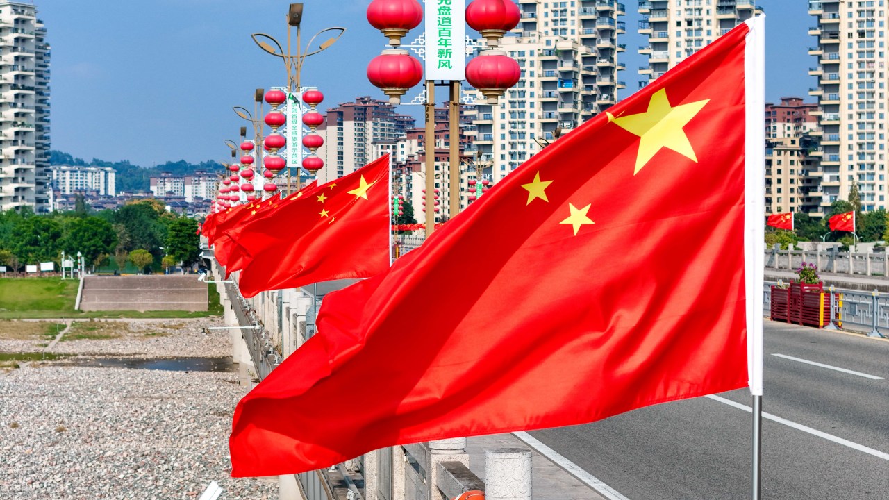 无处不在的五星红旗迎风飘扬