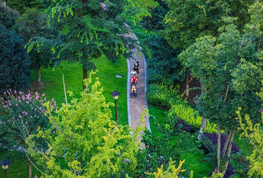 在龙吟滩湿地公园,花草植被郁郁葱葱,人工湖、游乐设施等分布其中,漂亮的健身步道将锻炼的人群串连起来,在秋日的傍晚,汇聚成幸福之源,传递出美妙的城市旋律。