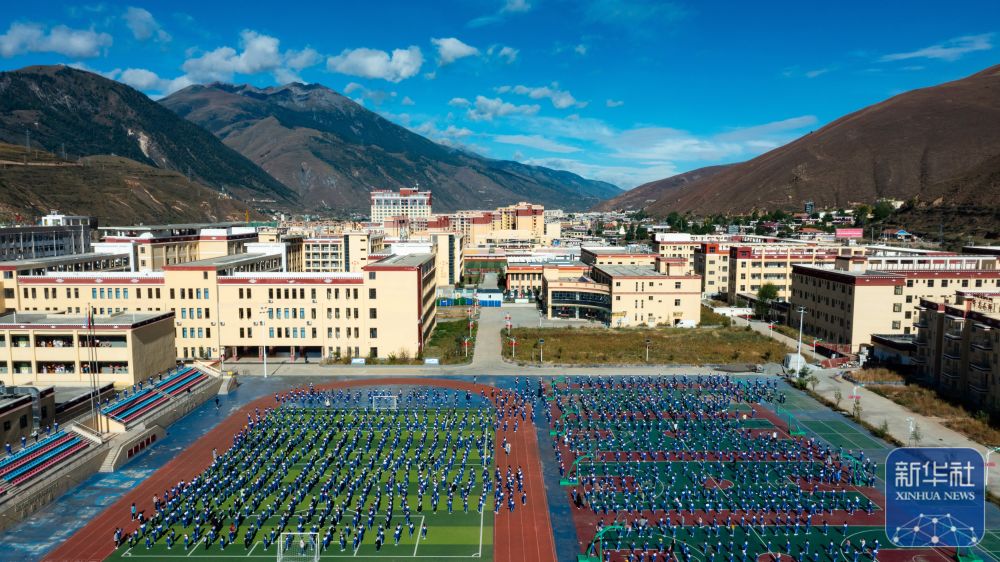 这是9月28日拍摄的道孚县城关第一完全小学(无人机照片)。