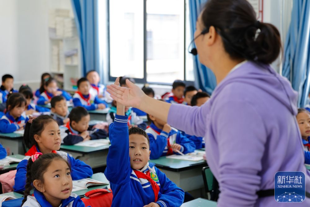9月27日,在道孚县城关第一完全小学,采取普通模式教学的三年级二班的学生在上英语课。