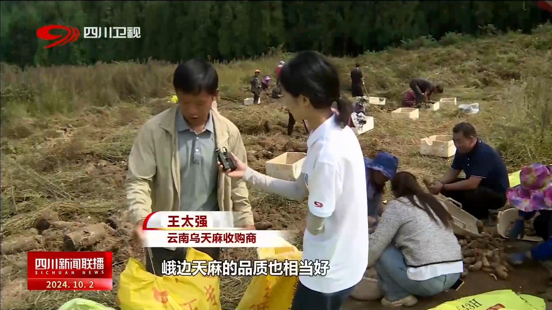 记者 陈琪璇:这里是乐山市峨边彝族自治县乌天麻种植示范园区,我手里这个酷似马铃薯的东西是乌天麻,我身后村民正在对刚挖出来的天麻进行分选、装袋。