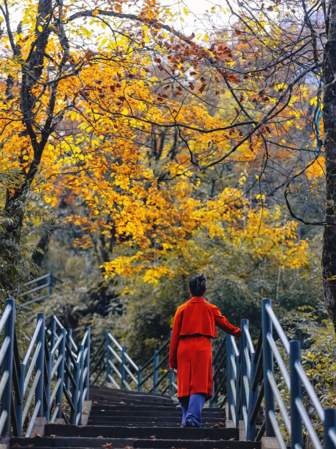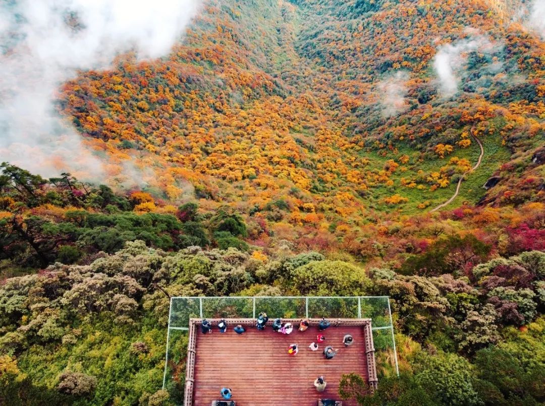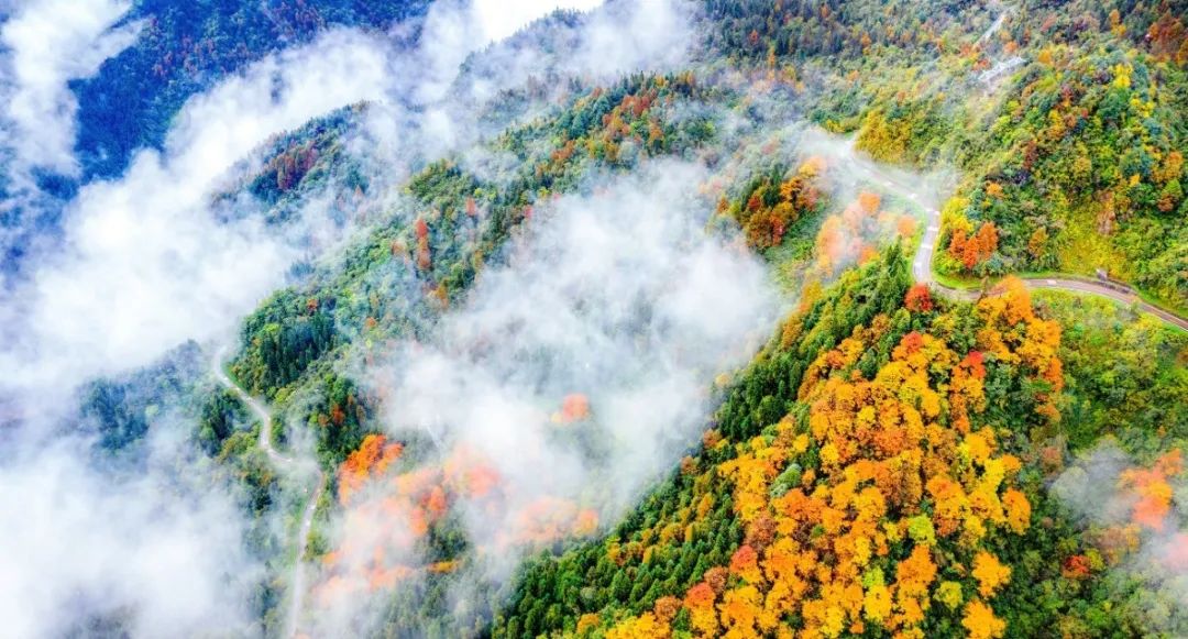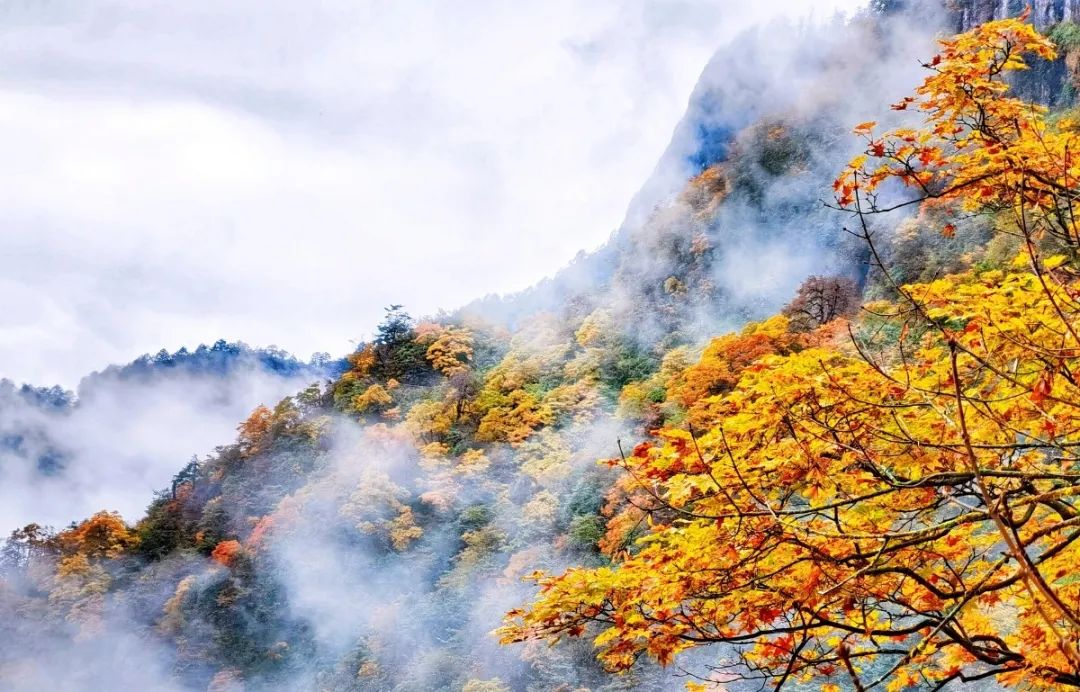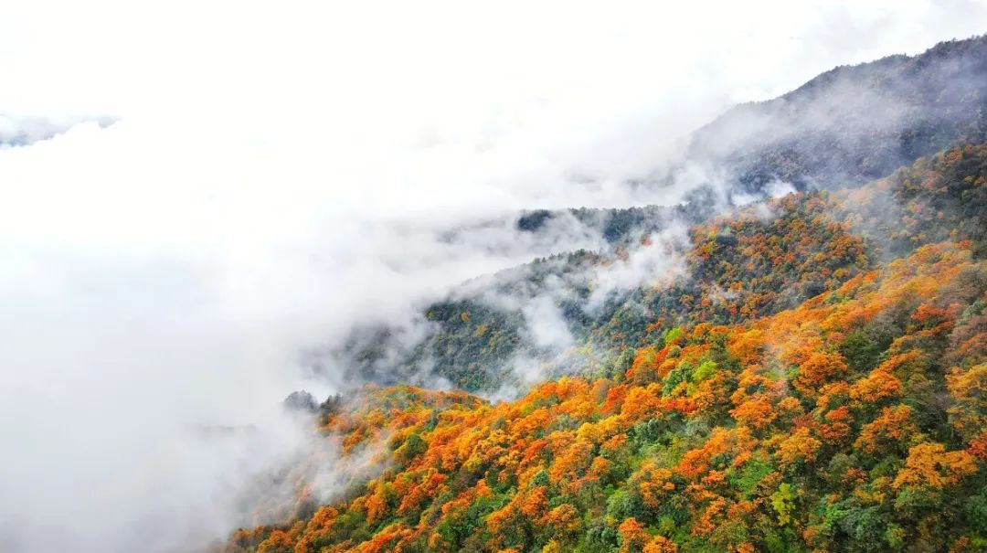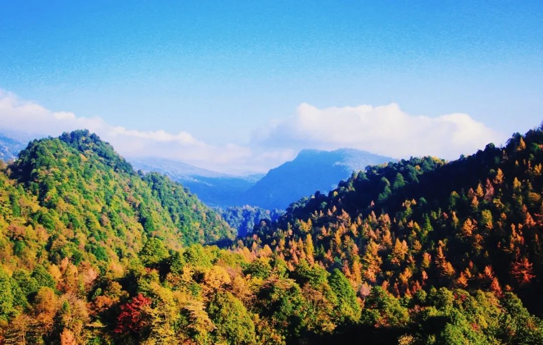 山峦之间由绿变黄、由黄变红地热闹起来