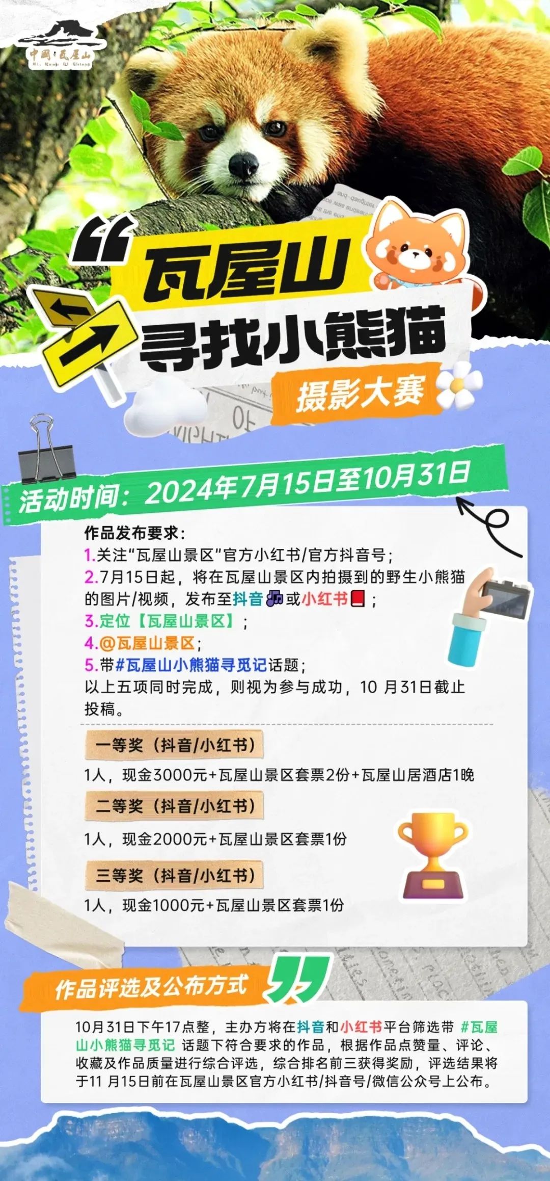 更有拍瓦屋山的小熊猫,赢取千元大奖