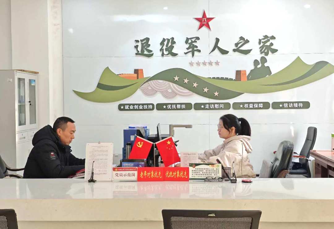△ 改造升级后的洪川镇退役军人服务站,工作人员正在认真工作。