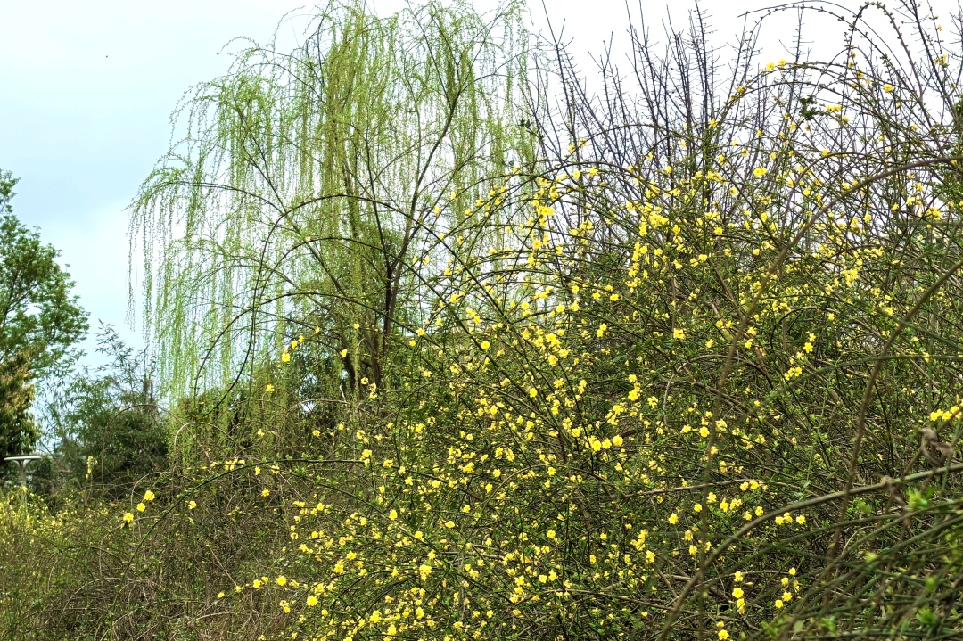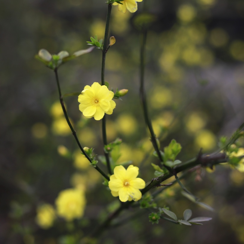 迎春花花朵金黄灿烂,花瓣小巧玲珑,花蕊点缀其中,如同点点星光,点缀在路边、溪畔,宣告着寒冬的结束与春天的开始。