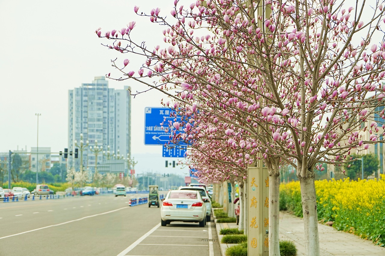 玉兰花,以其高雅脱俗的气质,成为了洪雅春日里一道亮丽的风景线。