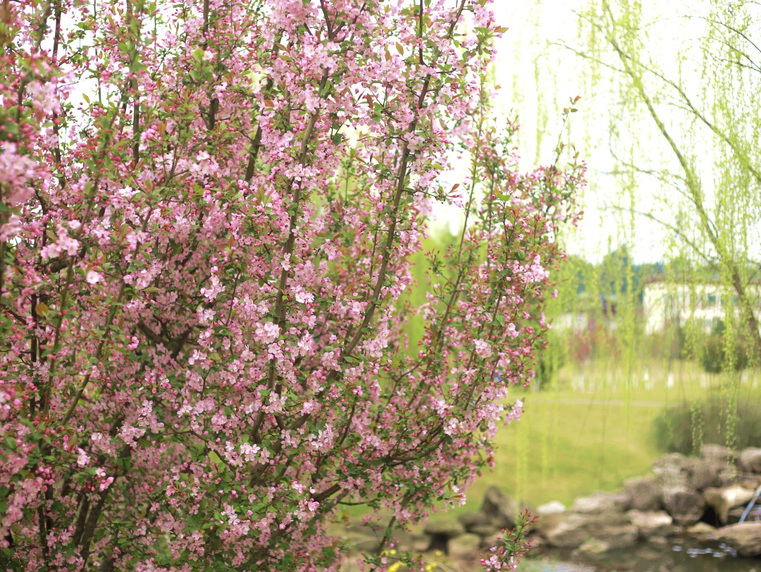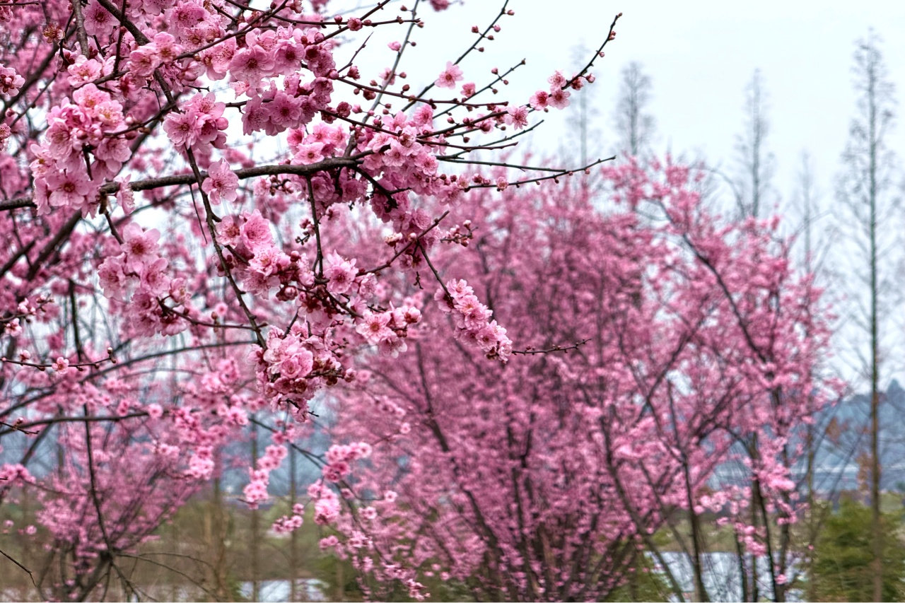 当温暖的春风拂过,紫叶李花如雪花般纷纷扬扬飘落,漫步树下,脚下渐渐铺就一层花毯,每走一步都仿佛踩在春天最柔软的梦里。