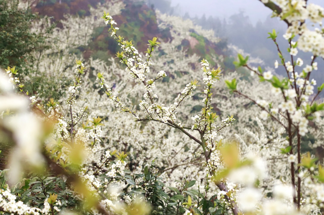 洪雅的李花盛开,是春天里最动人的风景之一。漫山遍野的李花洁白如雪,一簇簇、一团团挂满枝头,像是被春风轻轻唤醒的精灵,悄然绽放。