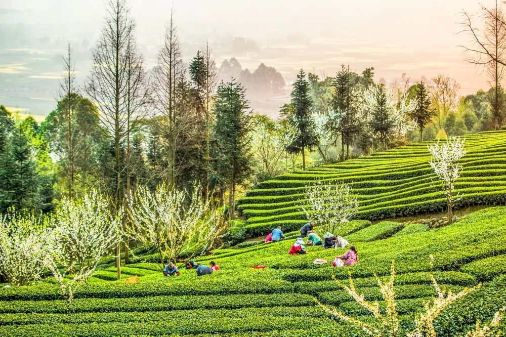 洪雅茶园遍布丘陵地带