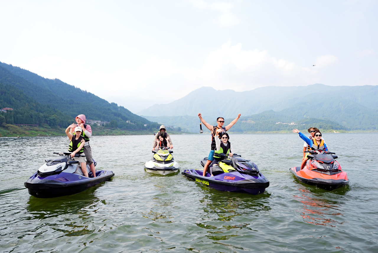在碧波荡漾的雅女湖上,一系列刺激有趣的水上游乐项目正等待你的体验。乘上疾驰的香蕉船,在浪花飞溅中感受速度与激情;驾驶炫酷的摩托艇,让湖风拂面而过;挑战惊险的空中飞人,在蓝天碧水间自由翱翔;或是悠闲地乘坐游船,慢慢欣赏瓦屋山倒映湖中的如画美景。这些丰富多彩的水上活动,不仅能让您尽情享受夏日的清凉,还能以独特视角领略瓦屋山“云上仙台”的绝美风光,为您的旅程增添难忘的欢乐记忆。