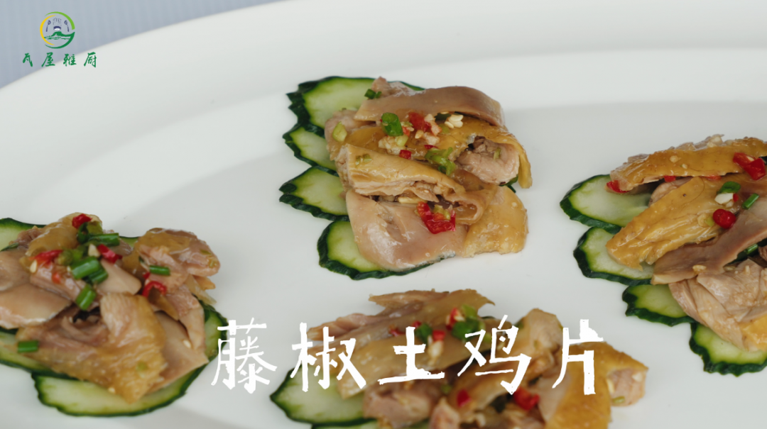 瓦屋山本地跑山鸡煮至外皮金黄,鸡腿肉去骨切片,加青红椒末、蒜末、藤椒油等调味。跑山鸡的细嫩肉质与藤椒的鲜麻碰撞,入口鲜爽,椒香直冲味蕾,开胃又过瘾。