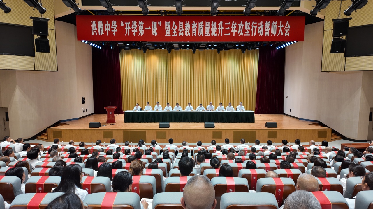 8月31日,洪雅中学“开学第一课”暨全县教育质量提升三年攻坚行动誓师大会举行。县委书记周代军出席会议并讲话。他强调,要以坚定的信心、无畏的勇气和扎实的行动,凝聚全县之力打赢教育翻身仗,重塑洪中百年名校的荣光。县委副书记、县长李忠云主持会议,并就贯彻落实会议精神提出要求。县人大常委会主任尹斗芳、县政协主席李明清出席会议。