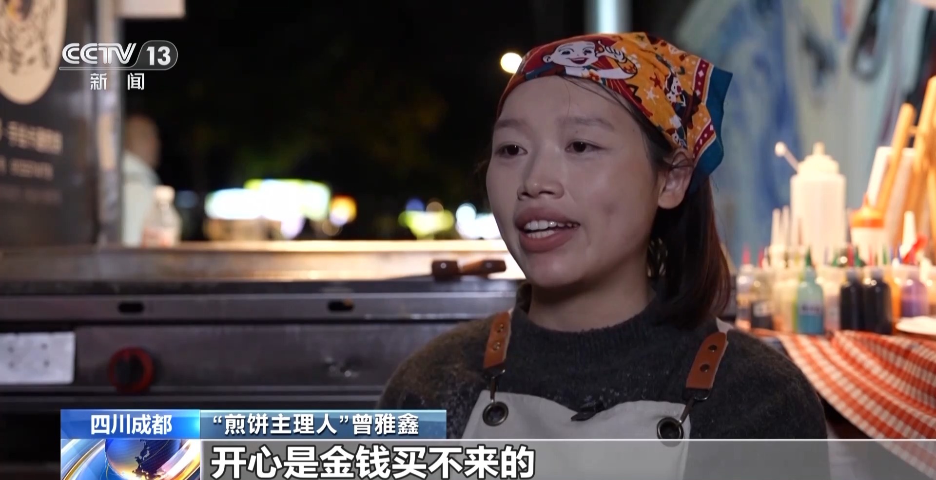 “煎饼主理人”曾雅鑫:有那种情侣的定制图案,他想给他的另外一半一个惊喜。还有的是给自己小孩带的,一个叔叔笑容满面,他说,因为我的女儿特别喜欢,开心是金钱买不来的,我等一下还要开两百多公里给它带回去。