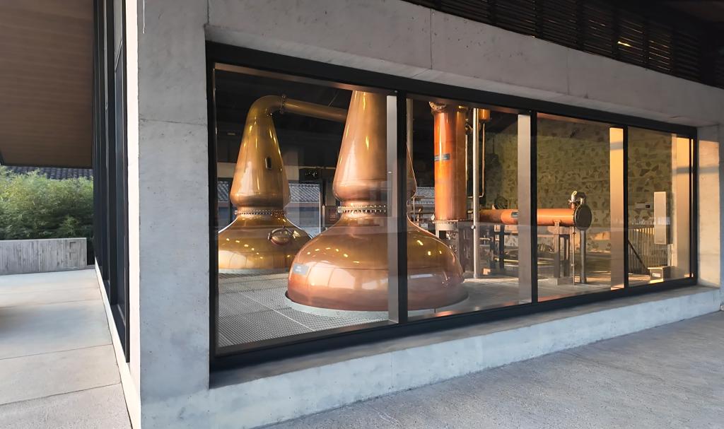 这是11月27日拍摄的叠川威士忌酒厂车间内的铜制蒸馏器。新华社发