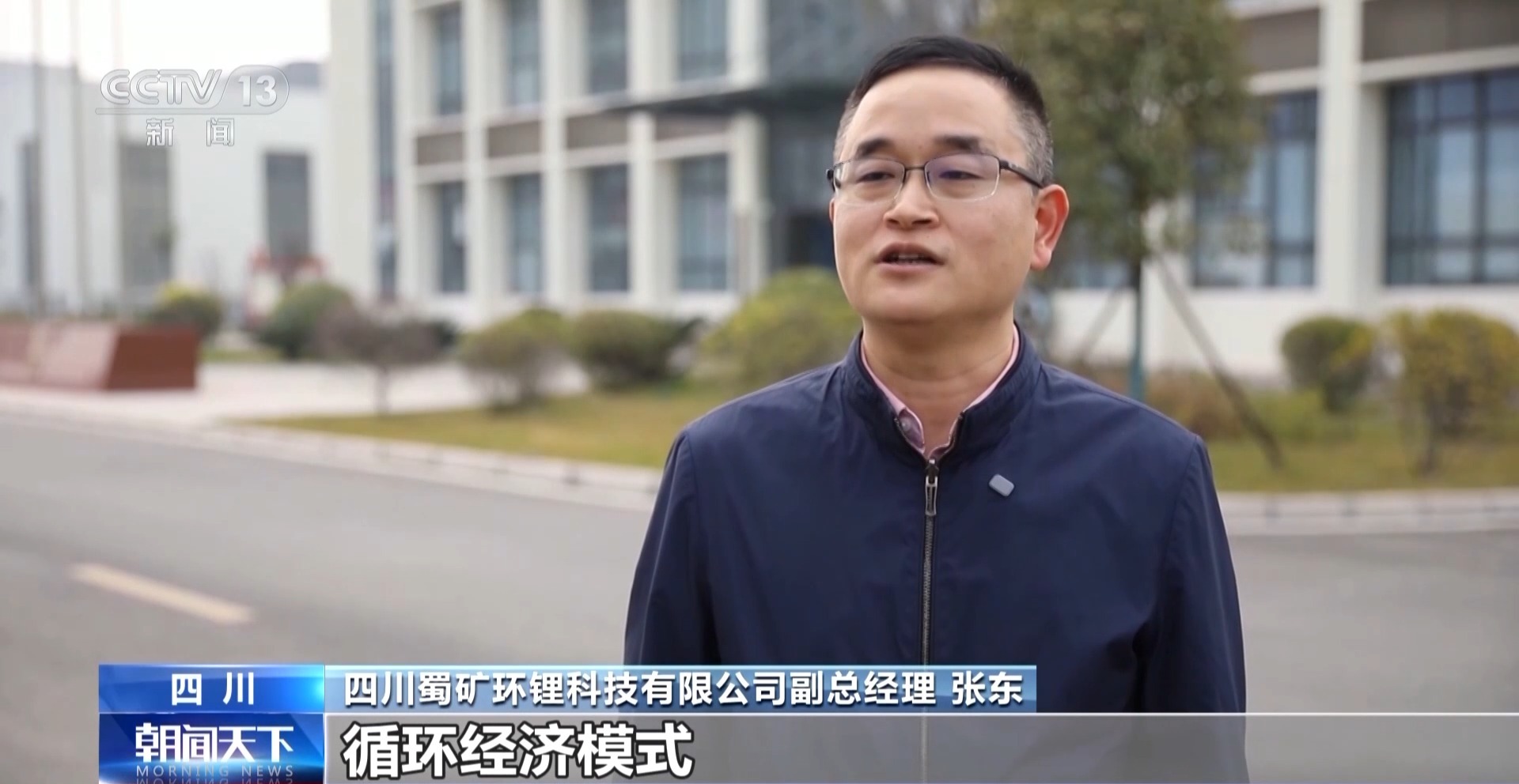 四川蜀矿环锂科技有限公司副总经理 张东:我们构建了从“资源—产品—废弃物—再生资源”的循环经济模式,每年可处理废旧电池2万余吨。生产的再生产品又可以供给锂电上游的企业,既降低了成本,又保护了生态环境。