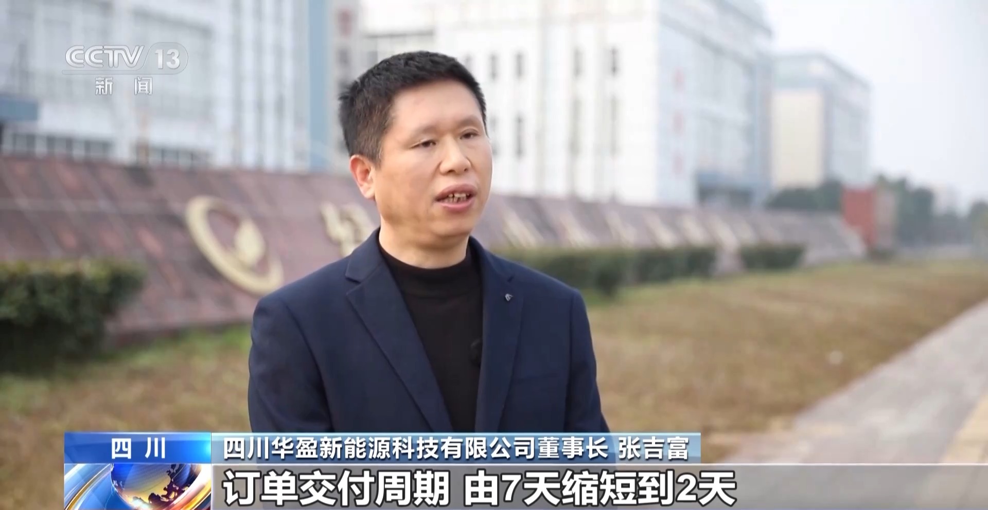 四川华盈新能源科技有限公司董事长 张吉富:我们主要为新能源锂电池企业配套生产锂电池盖帽及钢壳,以前在外地办厂,物流成本高、周期长。搬到射洪锂电高新产业园后,订单交付周期由7天缩短到2天;还能与周边锂电企业联合研发,订单量也增长了3倍多。