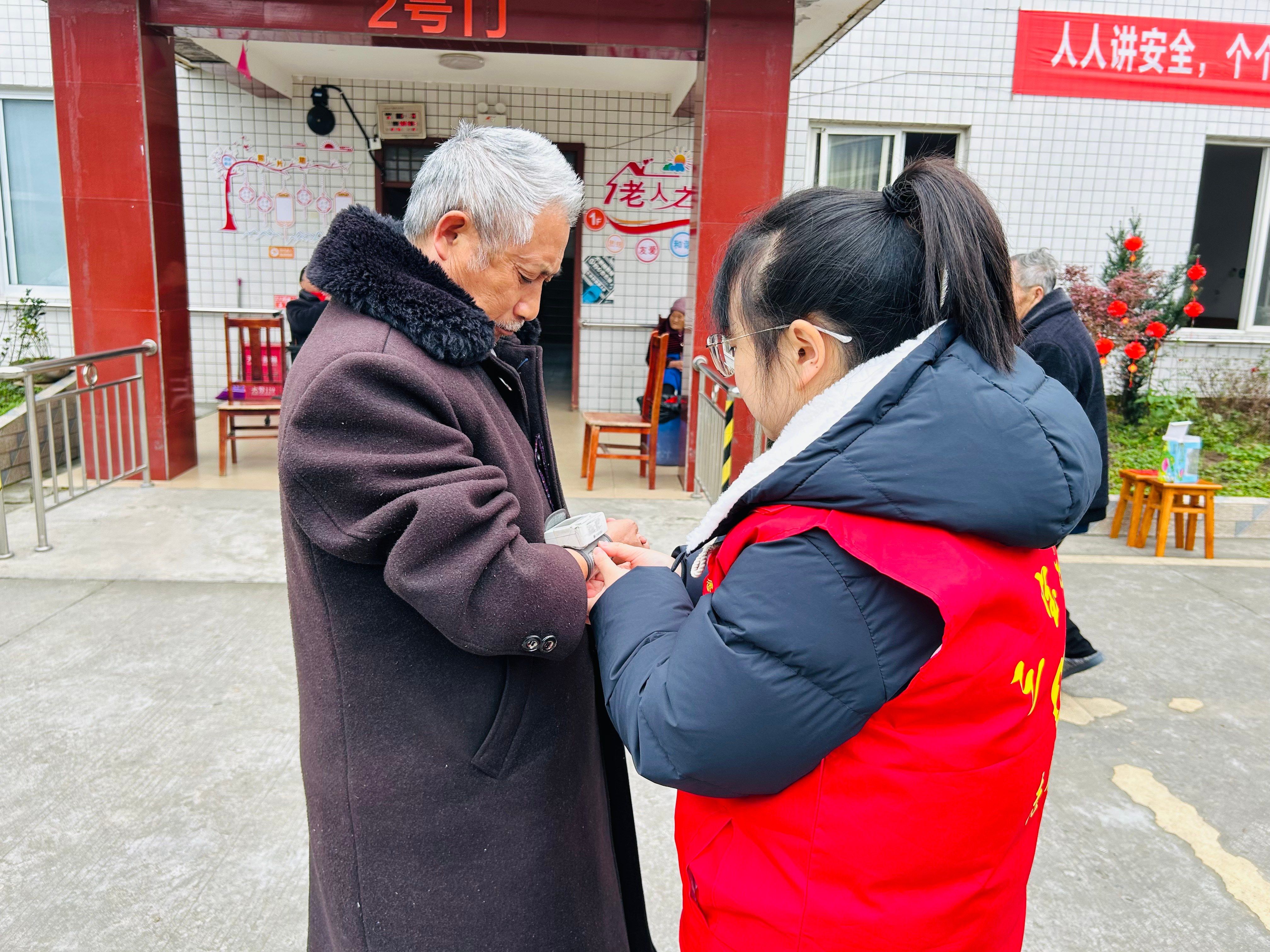 围炉煮茶环节,氤氲茶香中,闲话家常与悄悄进行的血压测量同步展开,专业关怀以“润物细无声”的方式融入陪伴。