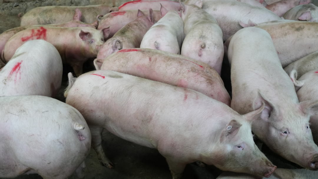 货车“川SD7167”刚停稳,80头毛色光亮的生猪被赶入待宰圈。