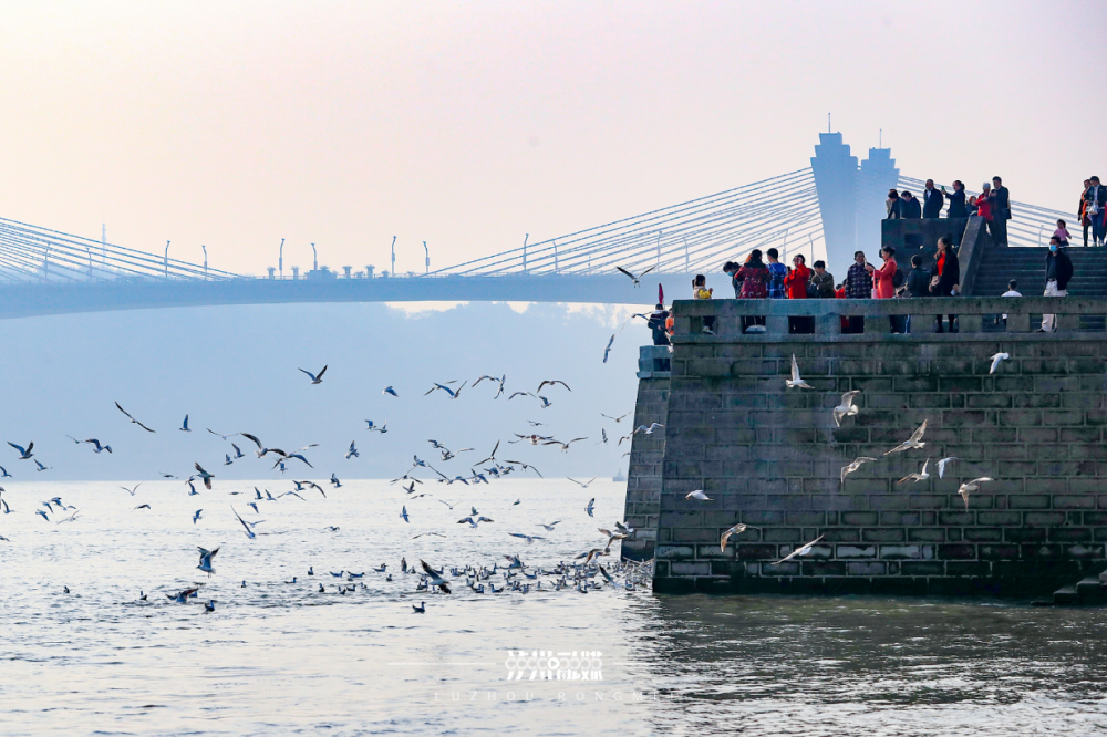 如今,到志愿者那里领些鸥粮,往台阶上一坐,抬手,喂鸟,已经成为了大多数人冬天到东门口的一种消遣。人们不再把海鸥当成外来的稀客,而是这座城市的一部分,天上的鸟、江里的鱼、岸上的人,就是人与自然最动听的和谐曲。