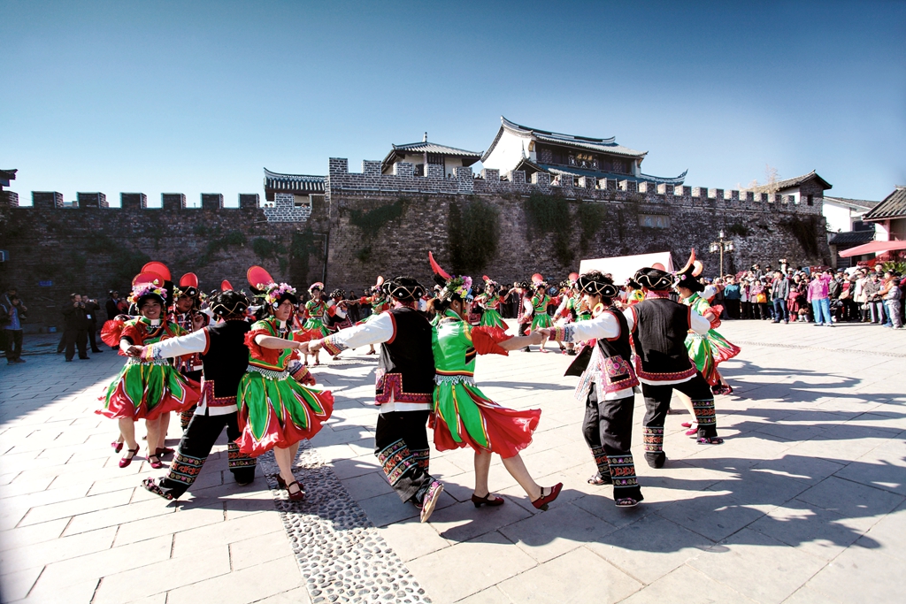 节庆里的诗意,是传统与现代的碰撞。端午时节,“万人药根宴”沿街开席,本地药根与土鸡、火腿慢炖成汤,香气氤氲全城,市民游客同桌共品,在一碗热汤里感受“天人合一”的养生智慧;火把之夜,彝族长号响彻夜空,篝火燃起时,万人同跳达体舞,古老仪式化作全民狂欢,热闹里藏着民族文化的鲜活生命力。