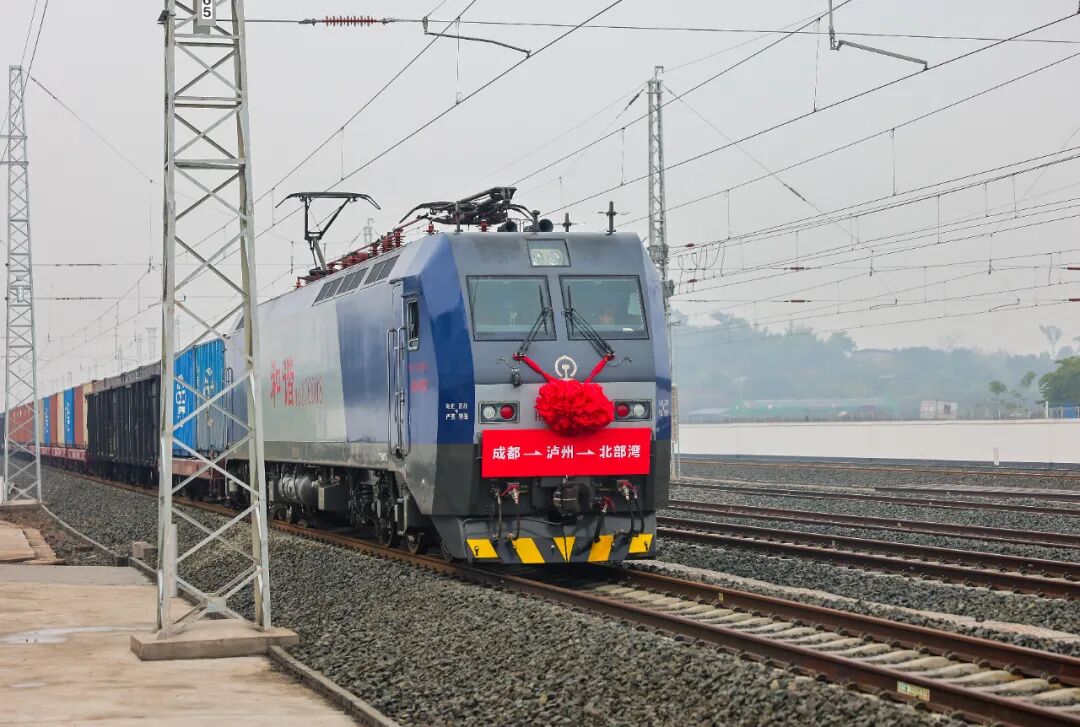 12月25日上午,西部陆海新通道隆泸叙铁路开通首发活动在泸州市龙马潭区双加站举行。10点30分,首班满载货物的和谐号列车从双加站驶出,标志着西部陆海新通道隆泸叙铁路正式开通。