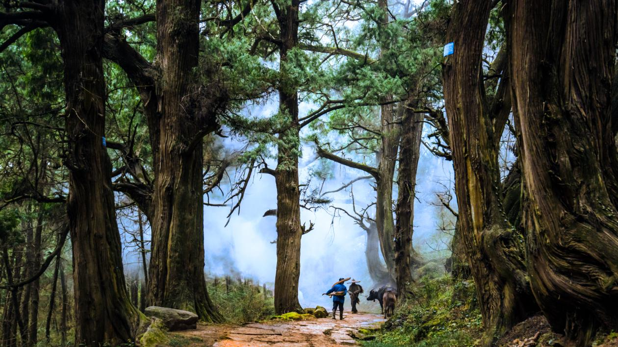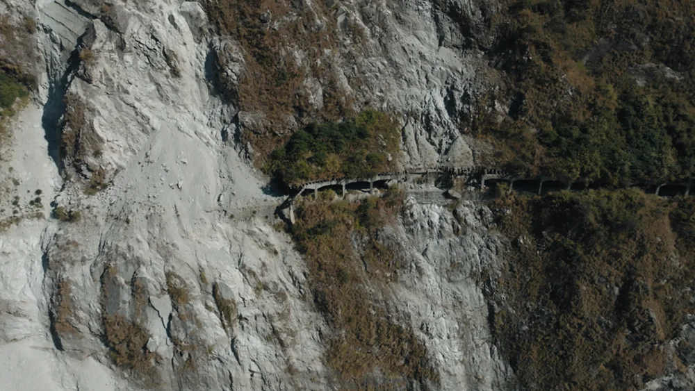 村子对面,“挂”在半山腰的公路,是以前唯一进出海螺沟的道路,如今已经废弃。水泥路弯弯曲曲,狭窄处仅能容一辆车通过。