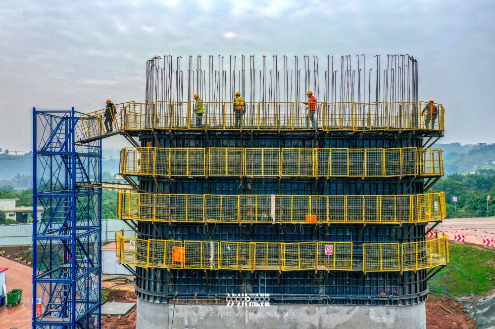2023年7月17日16时许,位于江阳区况场街道境内的西部陆海新通道隆泸叙铁路施工现场,建设者们身着工作服,头戴安全帽,系上安全绳,冒着高温进行铁路桥墩施工,现场热火朝天。