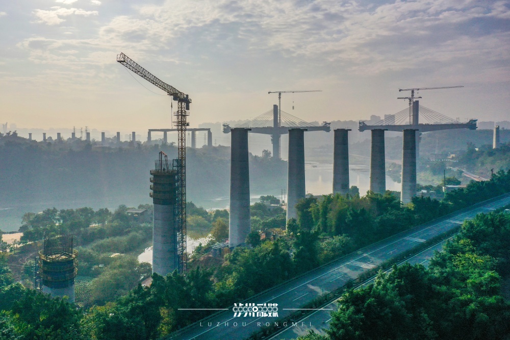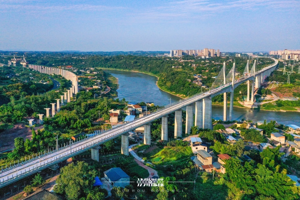 2024年3月25日,西部陆海新通道隆泸叙铁路、渝昆高铁、G76厦蓉高速公路与远处的绵泸高铁内自泸线,在泸州市沱江畔“同框”。