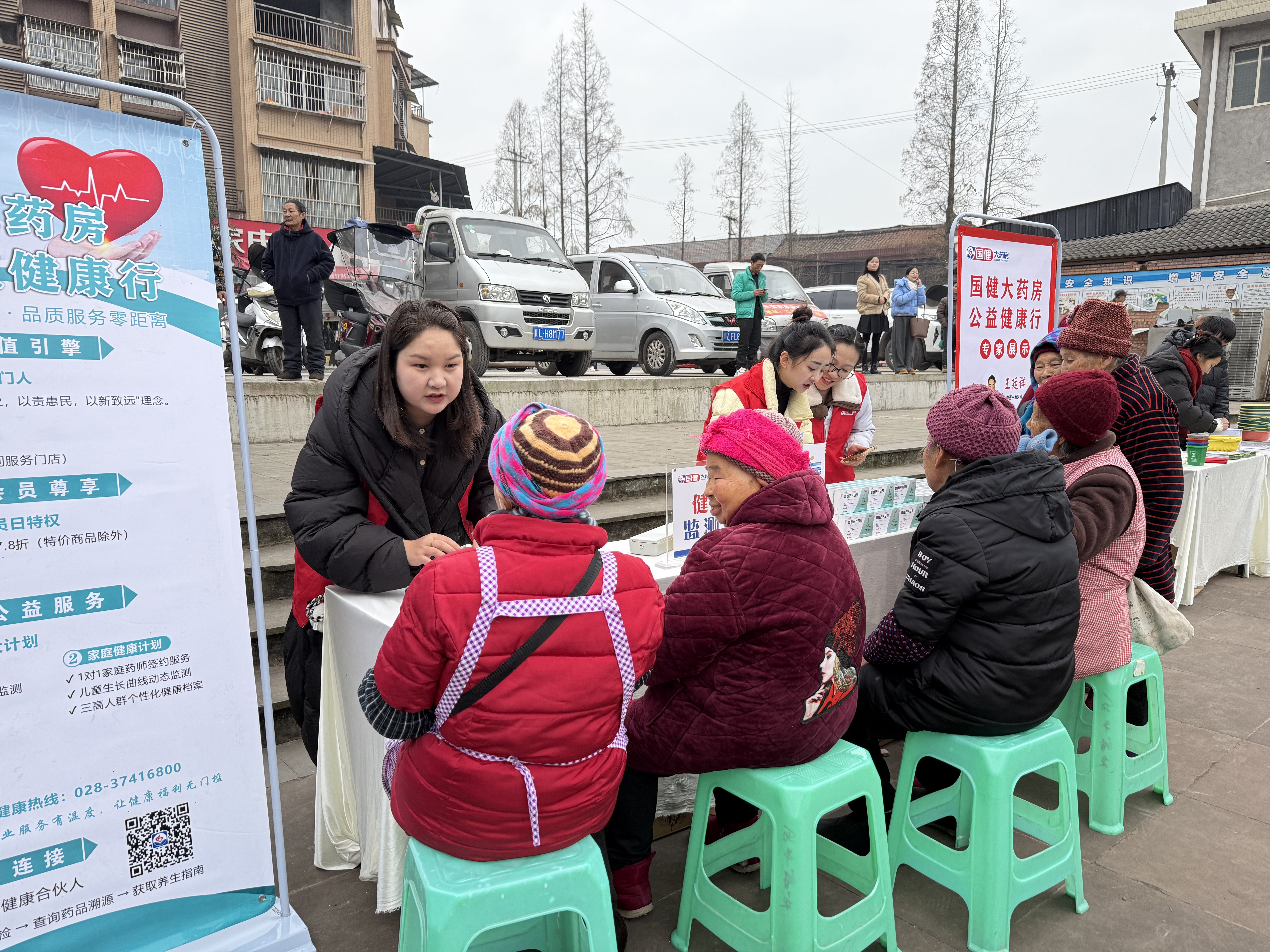 此外,趣味互动与便民服务也同步开展。现场抽奖活动让三宝特色产品深入人心;银行工作人员现场向群众普及金融知识;医务人员则为群众测量血压、提供健康指导。贴心周到的服务获得群众一致好评。