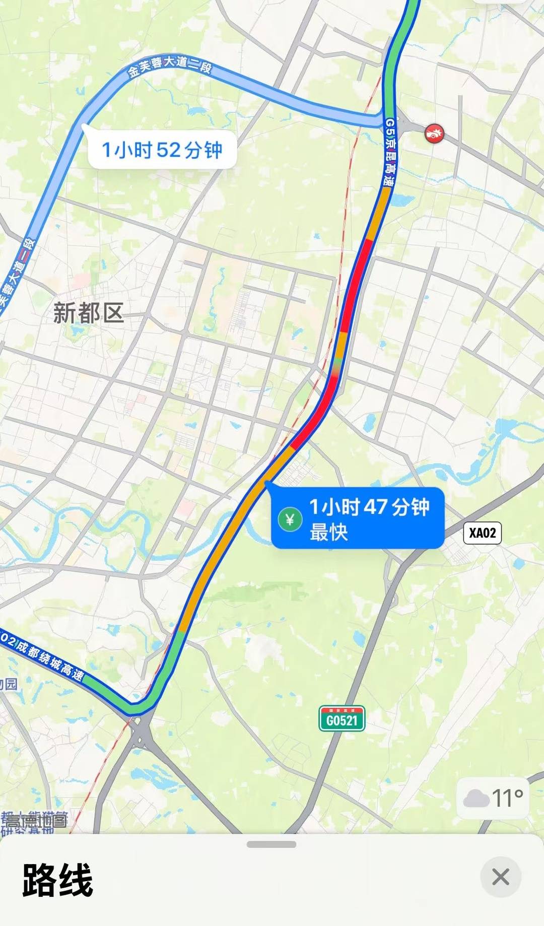 最易堵路段为新都至成都段