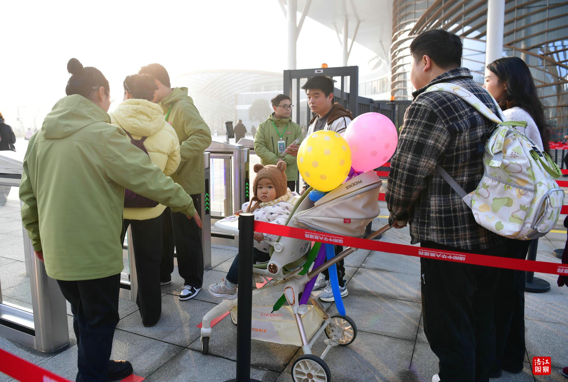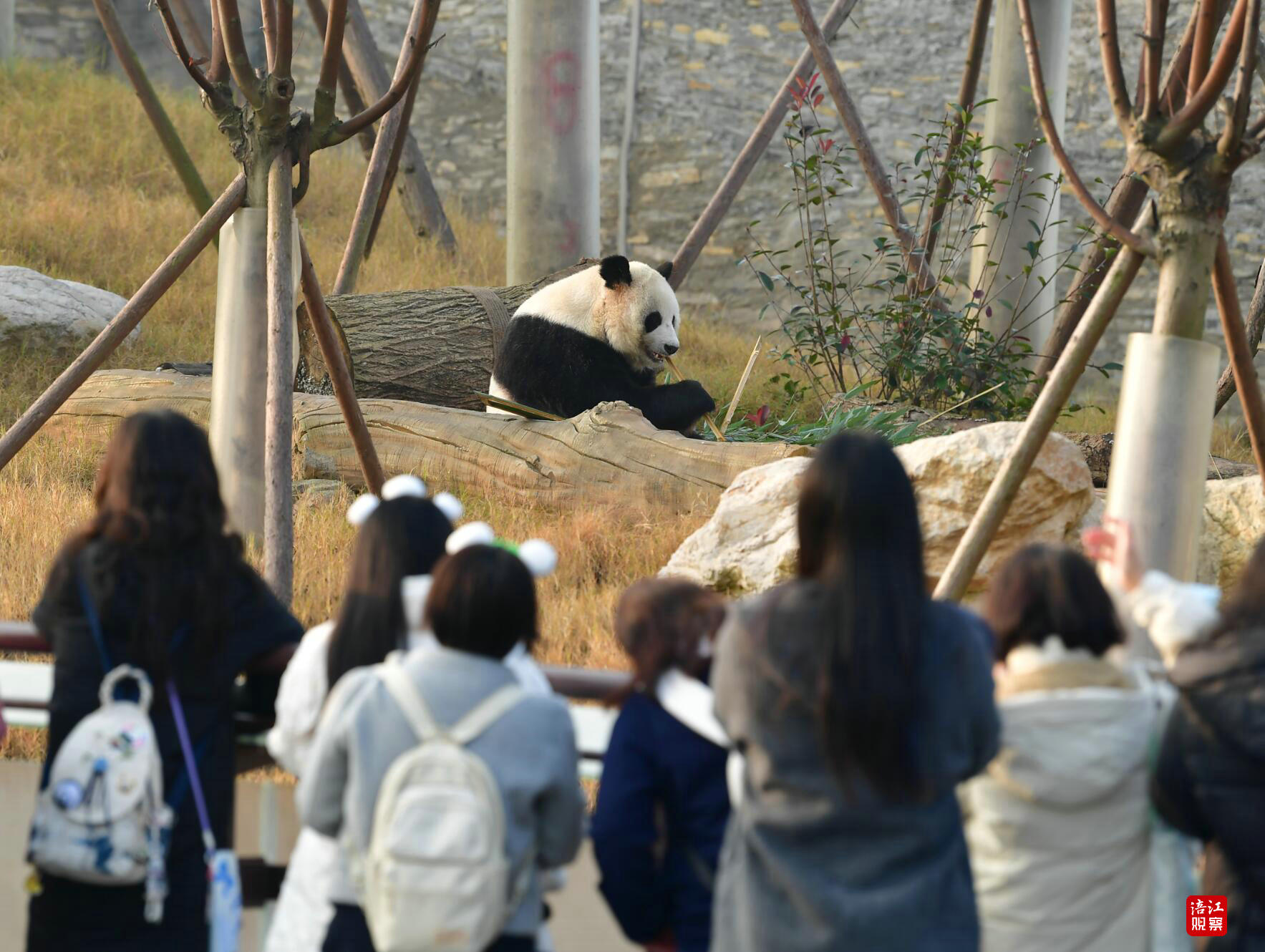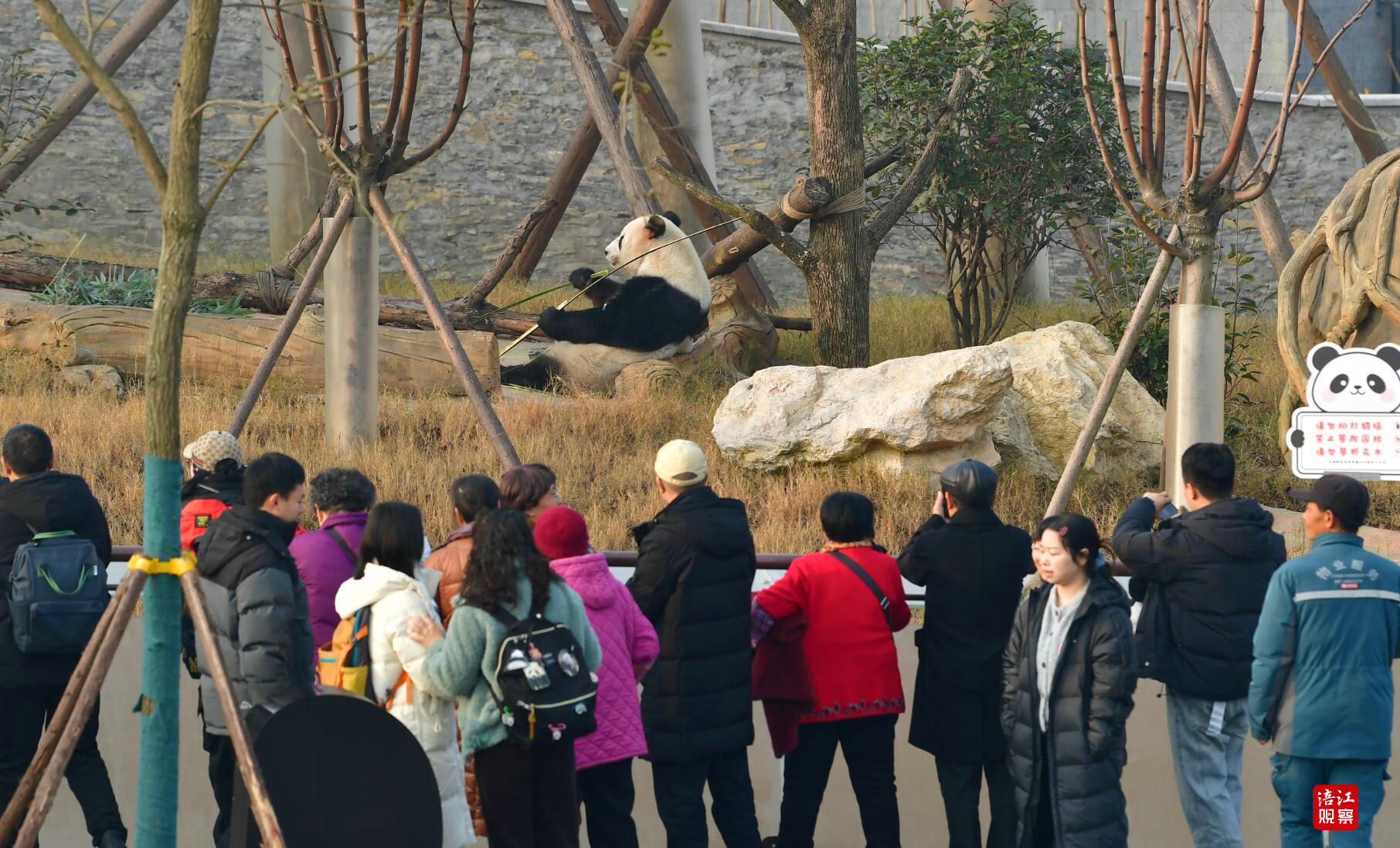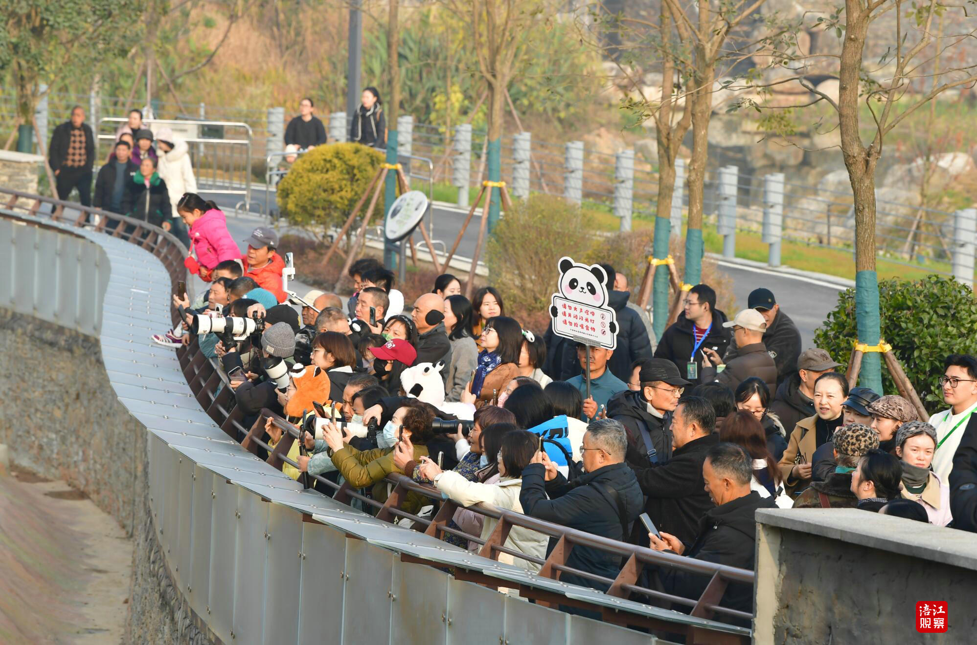 尽管冬日清晨寒意犹存,但园区入口处早已洋溢着热切期待的氛围。不少游客头上戴着熊猫造型的发卡,排队入园。