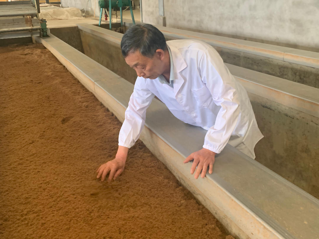杨益检查醋醅温度湿度。