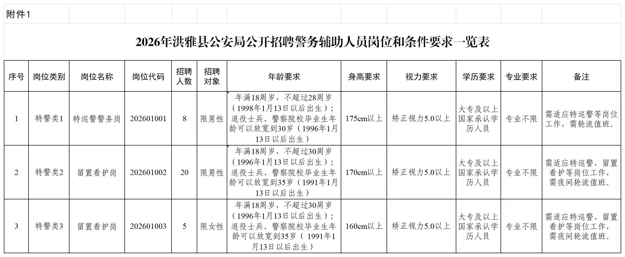 附件:1.《2026年洪雅县公安局公开招聘警务辅助人员职位情况表》