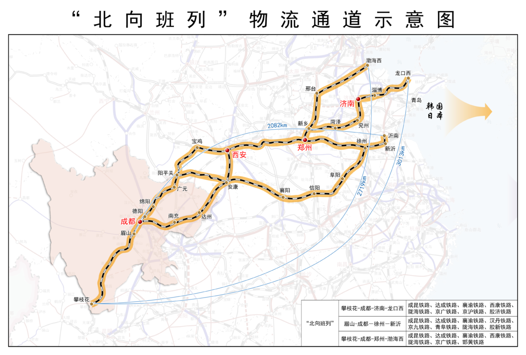 “北向班列”物流通道示意图