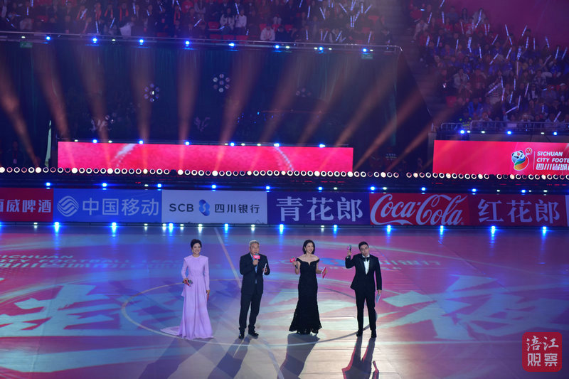 在盛典环节,绵阳籍歌手白举纲演唱《战士》,点燃开场序幕,“川超”歌曲串烧、五人制足球趣味挑战赛、创意表演秀《四川超安逸》等轮番上演,现场揭晓“川超”十大精彩瞬间,举行新书《四川超安逸——一场足球赛事背后的四川观察》赠书仪式。活动中,著名足球解说员韩乔生、刘建宏、张力亮相现场,著名歌手韦唯领唱《亚洲雄风》收尾。