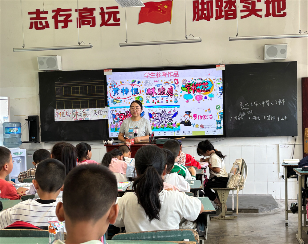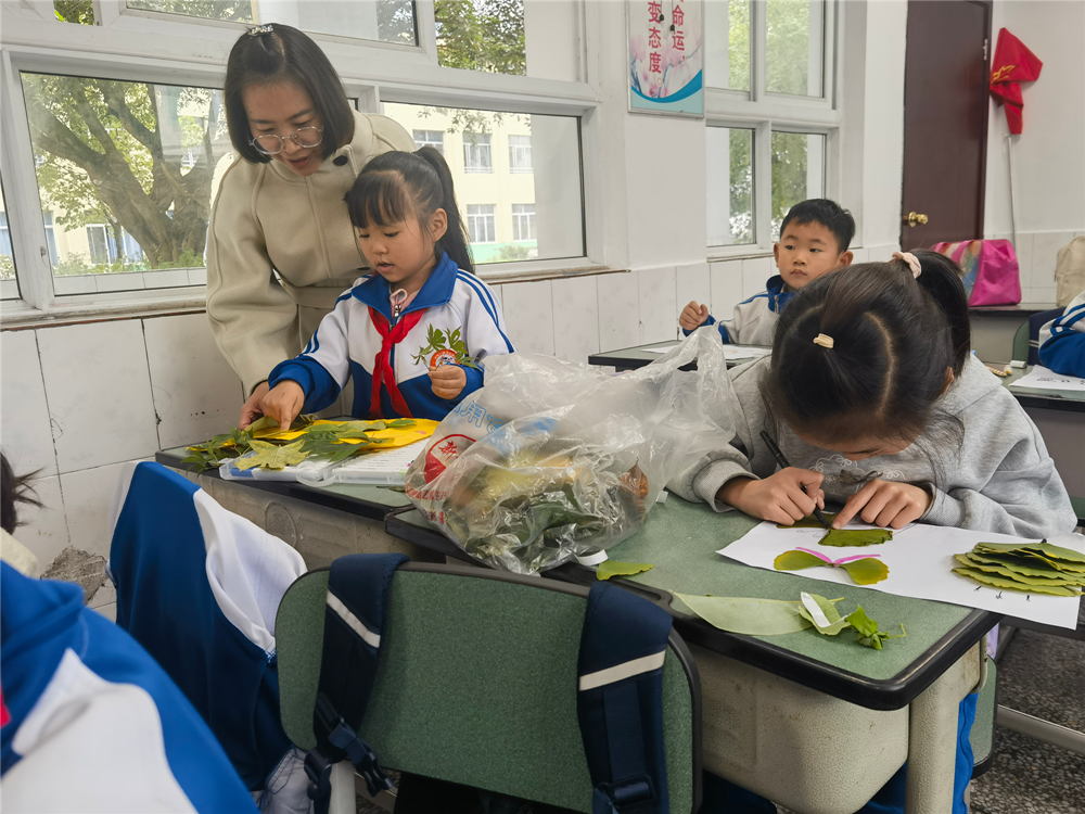 “同学们,我们今天用树叶、石子创作一幅乡村风景画!”在农村学校的美术课堂上,来自致远学校的走教教师廖群正带领田锡小学的学生利用身边素材开展创作。