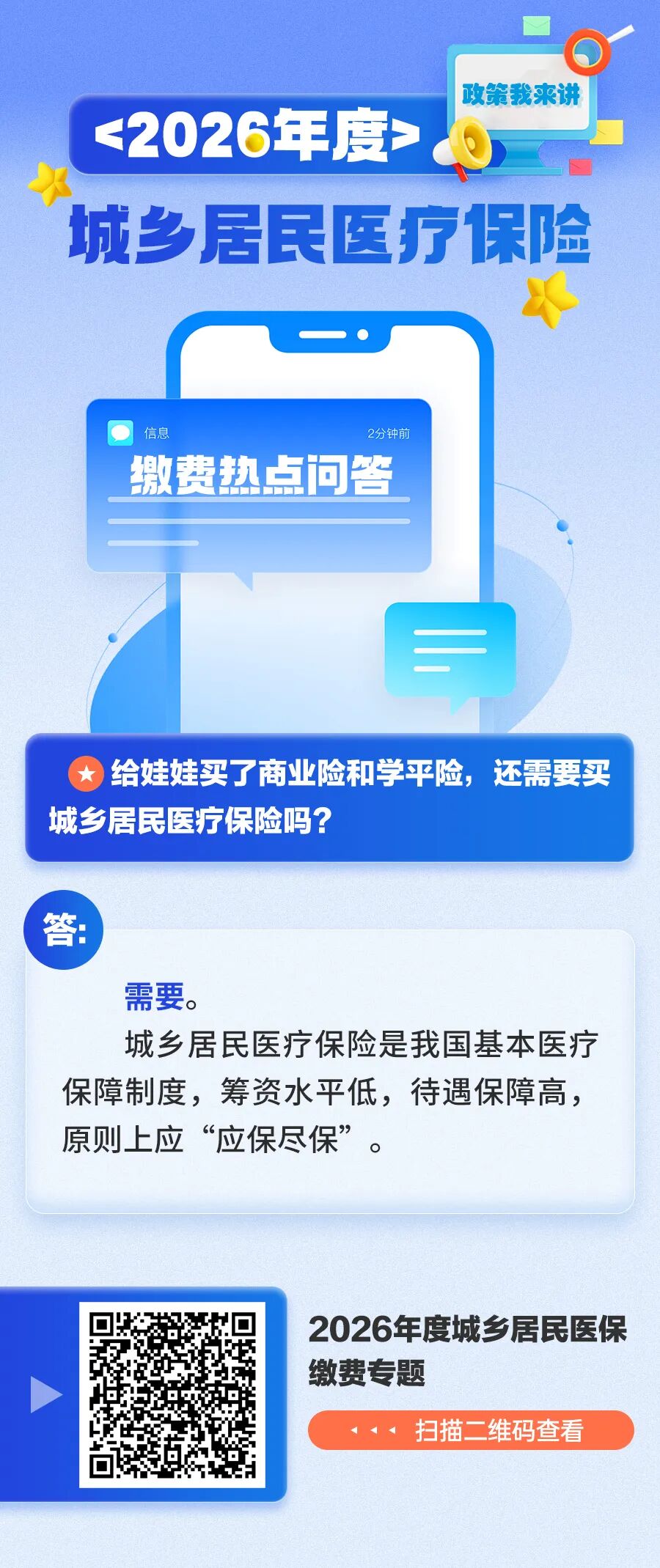 2026年度城乡居民医保缴费热点问答:给娃娃买了商业险和学平险,还买居民医保吗? 洪雅县税务局 2026-01-20 17:07 294 编辑:李镒先审核:卢中印 打开微信“扫一扫”,打开网页后点击屏幕右上角分享按钮 评论 0 还没有添加任何评论,快去APP中抢沙发吧! 我要评论