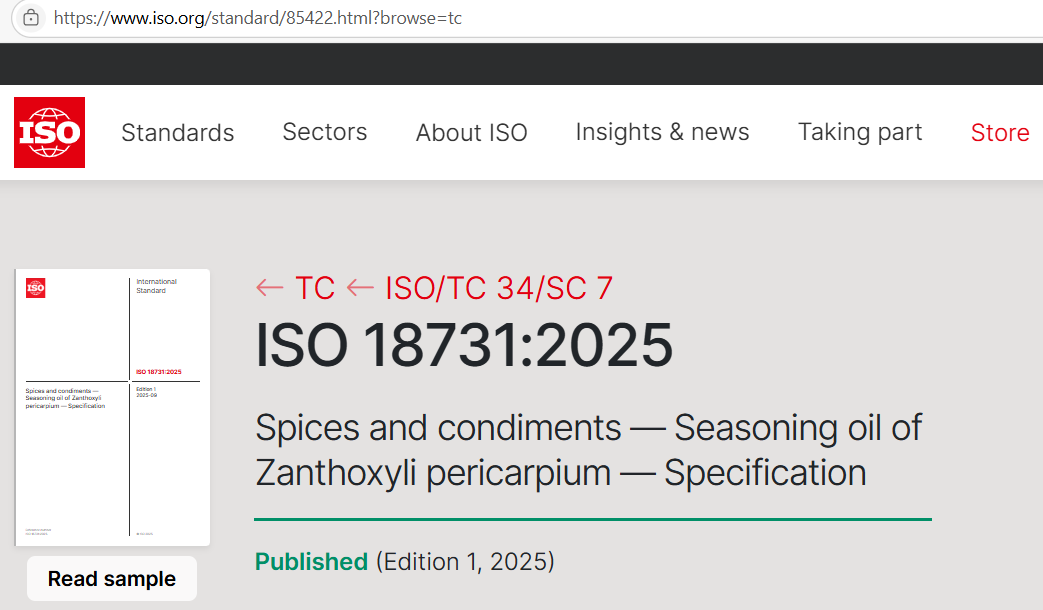 洪雅企业提案,我国牵头制定的香辛料领域首个国际标准正式发布。(网站截图)