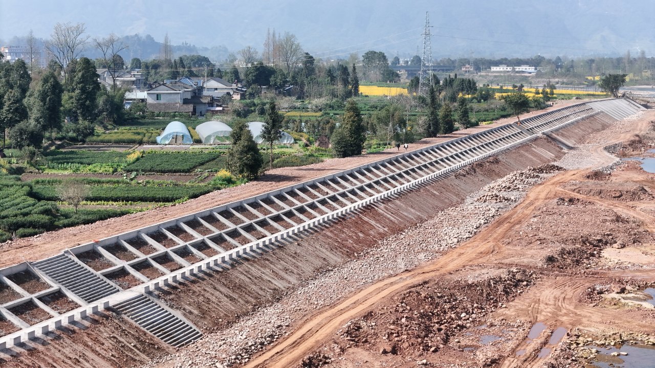 2月25日,记者在青衣江文塘大堤孙坝右岸段防洪治理工程现场看到,工人们正与施工机械密切配合,有序推进堤坝框格梁浇筑等关键工序。不远处,大段新建堤坝已沿江舒展,雏形尽显。