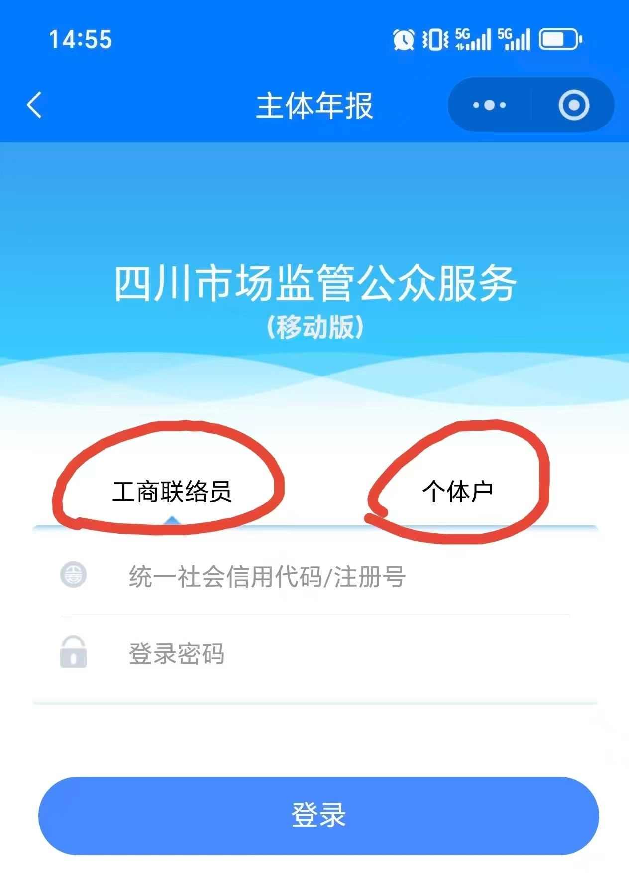 4.按情况选择“工商联络员”或“个体户”登录,进入填报页面。